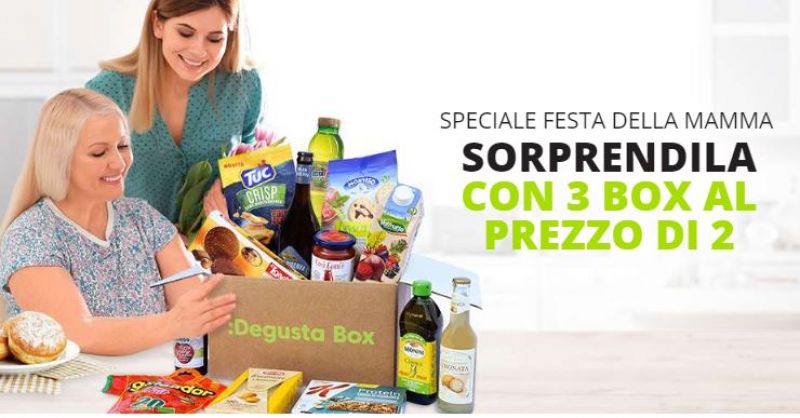 Scopri la nuova promozione DEGUSTA BOX dedicata alla Festa della Mamma: acquista 3 Box al prezzo di 2, senza bisogna di stipulare un abbonamento!