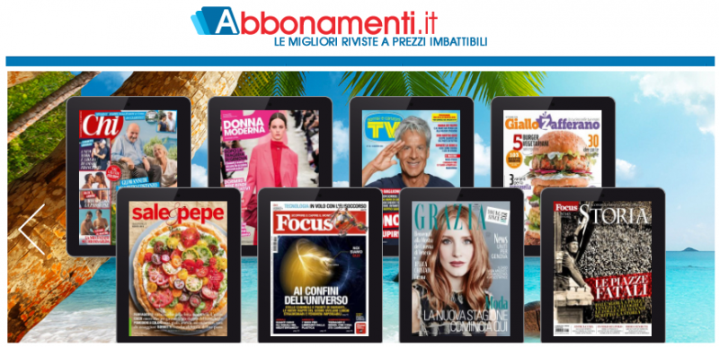 Sicuramente già conosci il sito Abbonamenti.it, il portale online che ti permette di abbonarti alle tue riviste preferite in modo semplice e veloce, approfittando di sconti eccezionali fino al 70%. Da oggi e fino alla fine di agosto 2018 potrai scegliere di abbonarti ad una buona rivista approfittando di un extra sconto. Infatti Abbonamenti.it ti dà la possibilitàdi aggiungere un ulteriore sconto del 5% utilizzando in fase di iscrizione questo codice promozionale. Il coupon è valido sulle riviste e i magazine di ogni categoria, senza necessità di spesa minima.