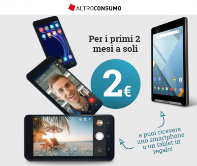 L'offerta Prova Altroconsumo ti offre i primi due mesi a solo due euro oltre alla possibilità di scegliere tra un tablet e uno smartphone in omaggio. Clicca qui per saperne di più o per abbonarti i primi due mesi a 2 euro e ricevere il tablet o lo smarphone in omaggio.