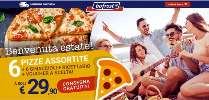 Abbiamo già presentato l'offerta foodbox a domicilio di Degustabox per questa estate, oggi parliamo di un'altra offerta gastronomica a domicilio, questa volta lanciata da Bofrost, il marchio numero uno in italia per quanto riguarda prodotti surgelati a domicilio. L'offerta di questo mese offre tutto l'occorrente per una cena estiva con gli amici: 6 pizze assortite + 6 ghiaccioli + ricettario + un voucher a scelta al prezzo speciale di 29,99 euro. La consegna è gratuita. Scopri l'offerta Bofrost del mese cliccando su questo link.