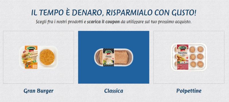 Per poter avere accesso ai buoni sconto Amadori è necessario registrarti (è possibile effettuare la registrazione anche attraverso un profilo social). Una volta registrato, potrai scegliere i tre prodotti Amadori che preferisci tra quelli disponibili: come i Gran Burger, il Polpettone ricetta Classica, le Polpettine, gli Hamburger o gli straccetti di pollo. Puoi selezionare fino a 3 prodotti per i quali riceverai i buoni sconto da utilizzare al supermercato direttamente all'indirizzo email segnato in registrazione.