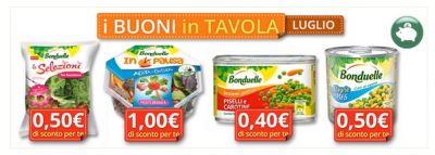 Insieme ai buoni Valfrutta di luglio sono arrivati anche i nuovi Buoni in Tavola Bonduelle, i buoni sconto stampabili per risparmiare al supermercato sull'acquisto di tanti prodotti Bonduelle.