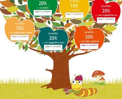 La promozione funziona così. Collegandoti a questa pagina troverai l'albero dei Buoni Sconto Prenatal: si tratta di 10 buoni sconto di valore variabile, dal 10% al 30% su 10 categorie differenti.