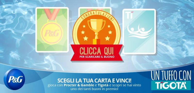 Una volta registrata, sei pronta per giocare. Clicca sulle tre carte per girarle: ti basta trovare due Carte P&G uguali per vincere il tuo buono sconto Tigotà. Cliccando su “Scarica il tuo buono” scaricherai dirrettamente sul tuo pc (o altro dispositivo il buono da stampare e da portare nel tuo punto vendita Tigotà di fiducia.