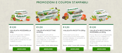 - coupon da 0,50€ per Vallelata bocconcini di mozzarella 200g