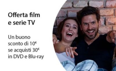 Acquistando 30 euro di articoli di questa categoria (senza limitazioni su titoli o generi, Serie TV, cofanetti, Film o edizioni speciali indifferentemente) si riceverà un buono sconto del valore di 10 euro che potrà essere speso su qualsiasi acquisto Amazon. Il buono sconto ricevuto non può essere utilizzato sull'acquisto di libri e contenuti multimediali (MP3 e applicazioni, contenuti digitali e via dicendo) o per l'acquisto di prodotti Kindle. Sarà inoltre spendibile esclusivamente sui prodotti venduti e spediti da Amazon e non da terzi in piattaforma Marketplace. L'offerta è valida dal 5 al 18 marzo 2018.