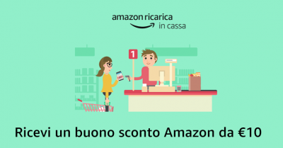Non hai mai fatto la "ricarica in cassa" del credito per il tuo account Amazon? Scopri questa modalità per ricaricare il credito e guadagna subito un buono sconto da 10 euro! Per ottenere il buono sconto Amazon da 10 euro è sufficiente effettuare una ricerica in cassa di anche solo 30 euro. Trovi questa e tutte le altre offerte Amazon e i Buoni Sconto alla pagina dedicata.