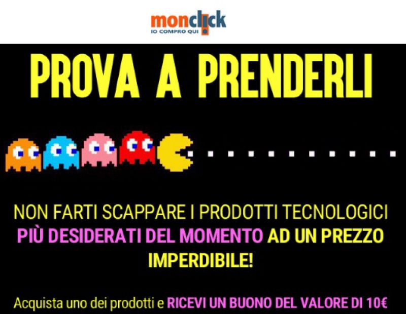 Ecco la promozione del momento: Acquistando uno dei prodotti della selezione "Prodotti più desiderati del momento" su Monclick, quasi tutti già in promozione, si riceverà un buono sconto del valore di 10 euro da spendere sempre su Monclick, su un nuovo acquisto.
