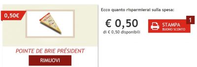 Questo è solo il primo dei coupon che President mette a disposizione delle sue clienti per l'acquisto dei suoi vari formaggi.