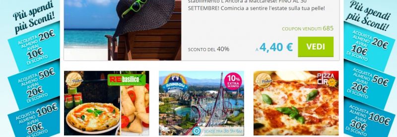 Se sei un abituè degli acquisti su Groupalia (ma anche se non l'hai ancora mai usato e vorresti provarlo) non perdere questa nuova promozione! Con il nuovo codice sconto Groupalia “Più spendi, più Sconti”: puoi ricevere un buono sconto fino a 30 euro da spendere sul portale per nuovi acquisti. Puoi prelevare subito il coupon alla pagina sempre aggiornata dei Buoni Sconti Groupalia.