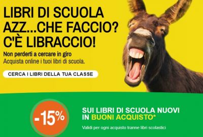 Ecco allora la prima promozione sui testi scolastici: si tratta della promozione Libraccio che, fino al 10 novembre 2018 ti offre un buono acquisto del 15% del valore speso in libri di scuola. Il coupon viene inviato nel pacco contenente i libri acquistati e sarà spendibile online, su un qualsiasi successivo acquisto di almeno 25 euro entro il 31 dicembre 2018. Non potrà però essere usato sull'acquisto di altri libri scolastici. Il Non sarà superfluo ricordare che il Libraccio offre anche la possibilità di acquistare libri di scuola usati per tutte le classi delle elementari, medie inferiori, superiori e per l'università. I libri usati solitamente sono scontati di un 30% rispetto al prezzo di listino. Un vero e proprio sollievo per tante famiglie che si trovano a dover affrontare prima di settembre ogni anno, questa importante spesa per uno o più figli.