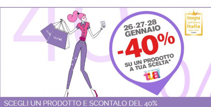 Il buono Sconto Lillapois è valido solo nelle giornate del 27, 28 e 29 gennaio 2017. Può essere usato su un qualsiasi articolo dell'assortimento Lillapois, ad esclusione dei Profumi e dei prodotti già in promozione. Via libera su tutto il resto del catalogo online! La promozione è valida solo per i possessori de LaTua!Card. Se ancora non ce l'hai, puoi richiederla direttamente in cassa, nel punto vendita più vicino a te o -se preferisci- puoi sottoscriverla direttamente online.