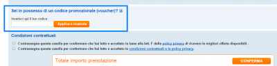 “Sei in possesso di un codice promozionale (voucher)? Inserisci qui il tuo codice” (vedi immagine)