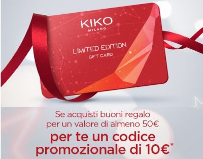 Attenzione, perché si tratta di una promozione valida solo per le Carte Regalo acquistate online: non sarà possibile quindi richiedere il buono sconto Kiko con l'acquisto di una Carta Regalo in un negozio fisico.