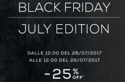 Attenzione perché lo sconto OVS è valido solo per 24 ore, fino alle ore 12 di sabato 29 luglio 2017. OVS ha chiamato questa offerta Black Friday di Luglio. Con il codice sconto OVS "BFJULY17" aggiungi un extra sconto del 25% su tutto quanto l'assortimento online. Il codice sconto è valido anche sui saldi e su tutte le collezioni Uomo, Donna e Kids. Puoi quindi utilizzarlo sugli acquisti che vuoi tu, per uomo, donna o bambino. Se vuoi risparmiare sul tuo acquisto OVS online non perdere tempo: il codice sconto Black Friday OVS è valido solo per 24 ore. Il coupon non richiede alcuna spesa minima per poter essere attivato.