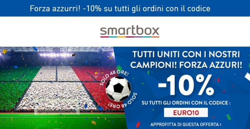 Il codice sconto Smartbox ti offre uno sconto del 10% su tutti i cofanetti esperienza, su tutti gli ordini effettuati online sul sito entro il 29 giugno 2016.