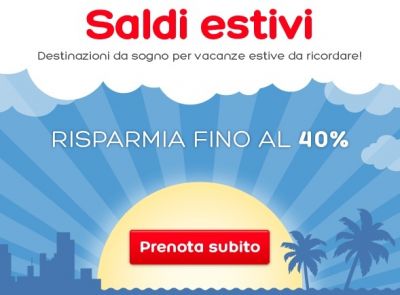 L'offerta in corso in questi giorni ti permette di acquistare il tuo soggiorno estivo con uno sconto anche del 40%. Ti basta inserire la tua destinazione e le date di tuo interesse per verificare il valore del tuo sconto. Se non hai ancora deciso dove andare, lasciati allora guidare tra le destinazioni di maggiore interesse segnalate da Hotels.com: prenoterai così la tua vacanza con un risparmio ancora più consistente.