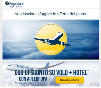 Con questo codice sconto Expedia, prenotando entro il 21 maggio 2017 un pacchetto volo + hotel per un acquisto minimo di 750 euro, otterrai un extra sconto di 50 euro, solo scegliendo Air Europa.