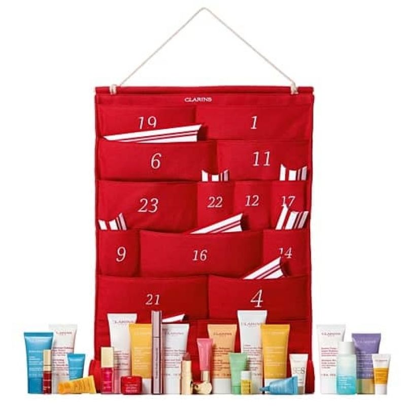 Clarins - Il calendario dell'Avvento Clarins presenta sempre tantissime sorprese ! Quest'anno sarà anche in una graziosa veste in tessuto, da appendere dove si vuole e da riutilizzare per tenere i prodotti make-up e bellezza. Il prezzo base è di 120 euro, ma grazie al Club Clarins è possibile usufruire del 10% di sconto e averlo a soli 108 euro !
