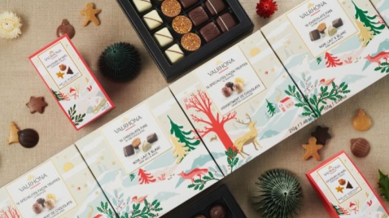 Valrhona - i Maîtres Chocolatiers del prestigioso marchio Valrhona dedicano al Natale questo delizioso cofanetto con ricche sorprese al cioccolato : praline, mini cioccolatini e variegati. Prezzo : 19,99 €