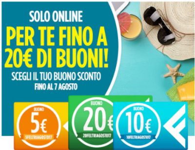 Si tratta di tre codici sconto La Feltrinelli che ti fanno risparmiare 5 euro, 10 euro, fino a 20 euro sul tuo prossimo acquisto online. I tre buoni sconto La Feltrinelli sono validi fino al 7 agosto 2017: li puoi trovare direttamente sul sito, a questa pagina.
