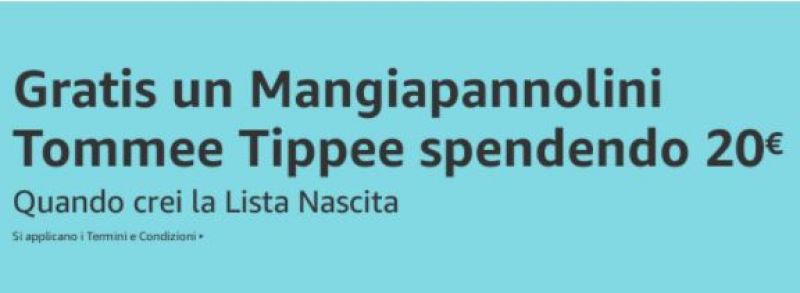 Non attendere troppo, la promozione non ha durata illimitata infatti la sua scadenza è il 22 ottobre data dopo la quale no sarà più possibile avere il dono di Amazon per le neomamme. Quindi affrettati ad aprire il tuo account Amazon per acquistare prodotti utili al tuo bambino, creare la Lista Nascita con tutti i doni che ti piacerebbe ricevere da parenti e amici e ottieni il bidone Mangia Pannolini Tommee Tippee Gratis!