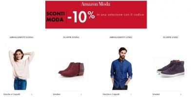 Con questo coupon potrai aggiungere un extra sconto del 10% a tutti gli articoli Amazon Moda delle Collezioni di Abbigliamento per Uomo Donna e Bambino già in Saldo e scontate fino al 70%.
