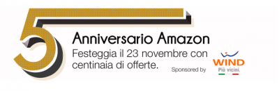 Infatti lunedì 23 novembre 2015 Amazon celebra il suo 5° Anniversario e per l'occasione riserverà ai propri clienti una vasta gamma di offerte scontatissime su tutte le categorie e i tanti articoli.