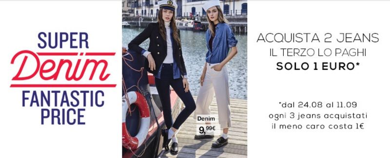 OVS ti propone questa volta un'offerta speciale sui Jeans di tutte le Collezioni, con la promozione Super Denim Fantastic Price. Grazie a questa offerta potrai portarti a casa un Jeans al costo di un euro! Per questa promozione non ti servono codici sconto (puoi comunque consultare la lista completa dei Coupon OVS sempre aggiornata qui)