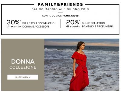 La promozione OVS Family & Friends è valida dal 30 maggio al 1 giugno e ti offre uno sconto del 30% su tutti gli articoli delle Collezioni Donna, Uomo e Accessori e uno sconto del 20% su tutto l'assortimento Bambino e Profumeria! Puoi restare aggiornato su tutti i nuovi coupon OVS e le promozioni attive per questa marca di abbigliamento e accessori consultando la pagina Buoni Sconto OVS.