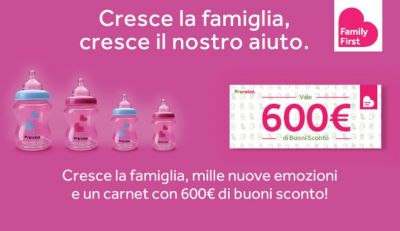 E' proprio questo il motivo per cui Prenatal, il celebre shop di prodotti e abbigliamento per la prima infanzia e premaman, rinnova la sua Promozione Family First, offrendoti per un'altra volta un Carnet di 600 euro di Buoni Sconto.