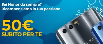 Sei già in possesso di un dispositivo Honor e stai per acquistare (o vorresti acquistare) il nuovissimo Honor 9? Scopri questa promozione e ottieni un rimborso di 50 euro sull'acquisto del nuovo smartphone Honor 9.