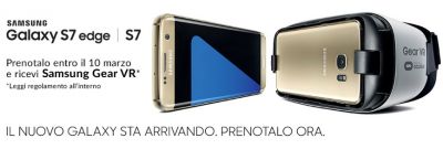 Se non hai approfittato della precedente promozione Samsung di inizio febbraio per avere il Gear VR in omaggio con l'acquisto di un Samsung Galaxy s6, non perdere questa nuova occasione per ricevere gratis il casco realtà virtuale Samsung, preordinando il nuovo Samsung Galaxy S7 e S7 Edge.