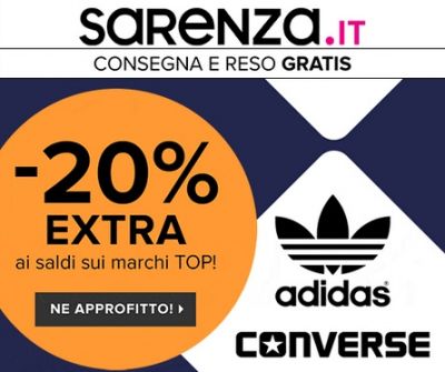 Sarenza, come vi avevamo annunciato, in questi giorni ha già scontato tantissimi prodotti fino al 60%, ora, però, vogliamo parlarvi di un'ulteriore news, un extra sconto del 20% su tantissimi prodotti già in offerta!