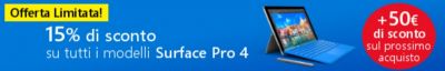 NB. La promozione aggiornata ad oggi 22 luglio, ti permette di risparmiare sui modelli Surface Pro 4 segnalati.