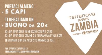 La promozione sul riciclo si chiama Terranova Support Zambia, fa riferimento ad una collaborazione con HUMANA e sarà valida dal 2 maggio fino al 17 giugno 2018.