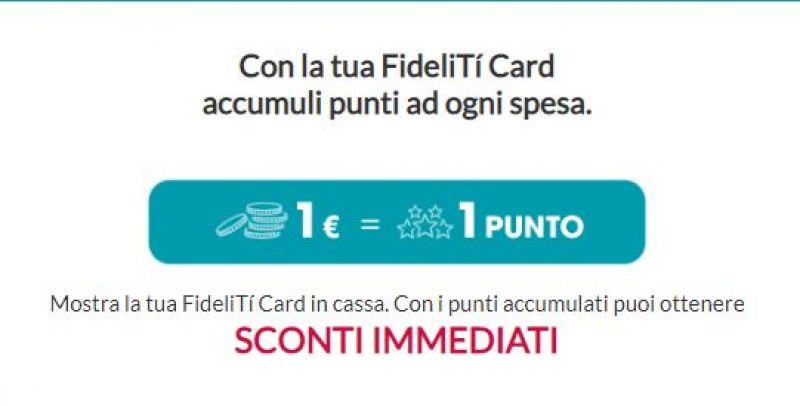 Al raggiungimento di 500 punti, potrai usufruire di un buono sconto del valore di 5 euro su di una spesa minina di 25 euro. Con 800 punti hai diritto ad uno sconto di 10 euro, con 1800 punti uno scondo di 25 euro e con 3300 punti uno sconto di 50 euro. Accumulando punti puoi avere anche una shopper.
