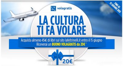 Con la promozione "La cultura ti fa volare", La Feltrinelli e Volagratis ti offrono uno sconto di 20€ sul tuo prossimo viaggio. Per avere il tuo buono sconto devi andare sul sito LaFeltrinelli e acquistare i libri che preferisci tra tutti i titoli disponibili del catalogo, raggiungendo una spesa di almeno 45€.