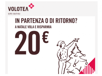 Tra le migliori offerte del momento per prenotare voli con lo sconto, segnaliamo l'offerta Volotea, che ci propone un codice sconto da 20€.